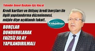 Türkiye Cumhuriyet Merkez Bankası (TCMB) ve Bankacılık Düzenleme ve Denetleme Kurumu (BDDK), bireysel kredi kartlarına ilişkin birtakım düzenlemeler yaptı. TÜKODER – Tüketiciyi Koruma Derneği Genel Başkanı Aziz Koçal konuyla alakalı yaptığı açıklamasında; “Yapılan düzenleme ile Kredi kartı ve ihtiyaç kredileri borçları olan vatandaşlarımıza 60 aya kadar yapılandırma getirilerek borçlu vatandaşlarımıza müjde olarak sunulmuştur. Hastalığı …